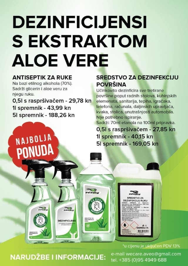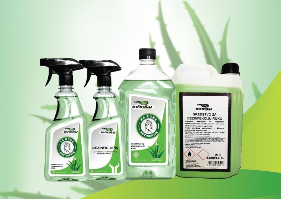 Domaći proizvođači su oprezni prilikom proizvodnje najtraženijih proizvoda današnjice, bez kojih u vrijeme pandemije ne možemo funkcionirati. Jedan od takvih je i domaći brend INFINITY koji u svojem sastavu ima čak 70% alkohola, te time udovoljava postavljenim kriterijima od strane HZJZ-a za prevenciju širenja virusa i bakterija. Ono što ga razlikuje od sličnih proizvoda na tržištu je činjenica da sadrži glicerin i aloe veru te ne isušuje ruke za razliku od uobičajenih sredstava. Nježno je i hidratantno već u prvom nanošenju te pruža dugotrajnu zaštitu, a ova učinkovito stvorena formula ubija više od 99,9% virusa i bakterija.
