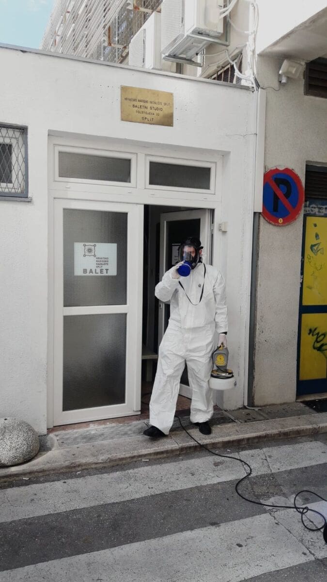 Dezinfekciju je obavila splitska tvrtka CIAN, a prostorije Baletnog studija u Tolstojevoj ulici jučer samoinicijativno i kazališni domari da bi to danas ponovili i djelatnici CIAN-a.