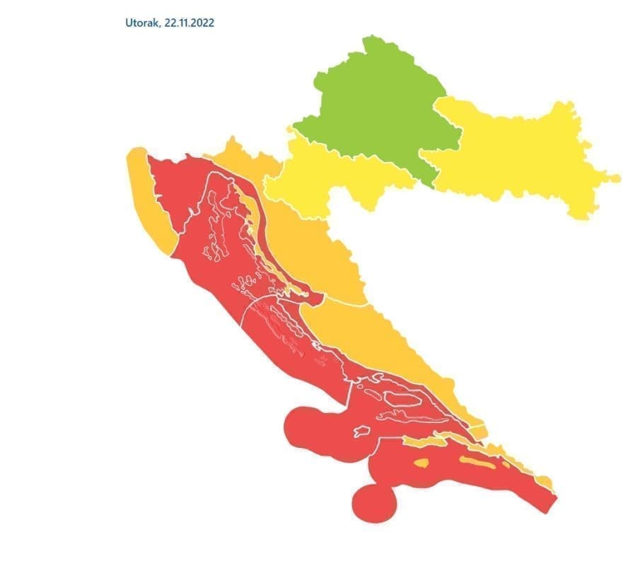 "Vrijedi od 22.11.2022 00:00:00 do 22.11.2022 23:59:59 | Stupanj pripravnosti: Crveno
