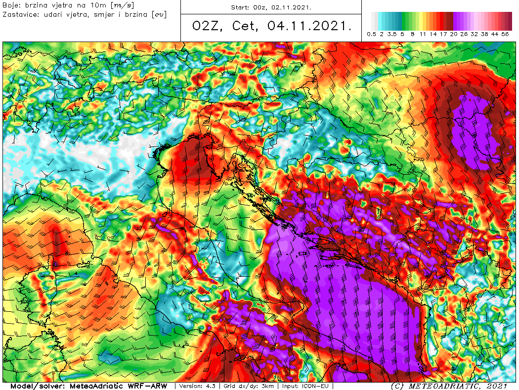 Prethodne noći preko Jadrana je prošao frontalni sustav donoseći kišu. Prema podacima mreže postaja Pljusak.com, zadnja 24 sata najviše oborina je palo na sjevernom Jadranu. Primjerice, u Lovranu je palo 99 litara kiše po kvadratnom metru.