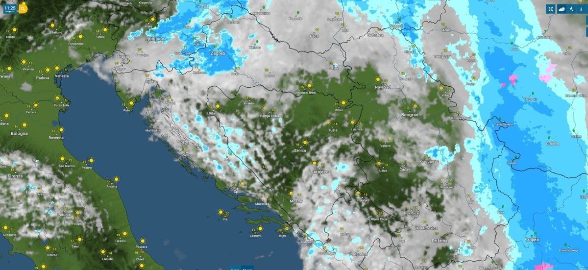 Dok je danas u većem dijelu unutrašnjosti oblačno, ponegdje uz kišu, na Jadranu, a osobito Dalmaciji je djelomično sunčano i suho. U 11 sati temperature zraka u unutrašnjosti zemlje su od 7 do 13°C, na sjevernom Jadranu od 12 do 17°C, u Dalmaciji od 15 do 21°C.
