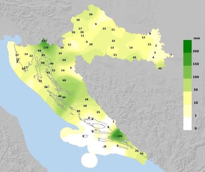 Promjenljivo i nestabilno razdoblje proteklih dana mjestimice je bilo praćeno grmljavinskim nevremenima i obilnom kišom, pogotovo na Jadranu i u predjelima uz njega (Slika 1). U Pločama je, prisjetimo se, pala i rekordna dnevna količina oborine od 189.8 mm u kratkom periodu od svega 2 sata te prouzročila bujične poplave.