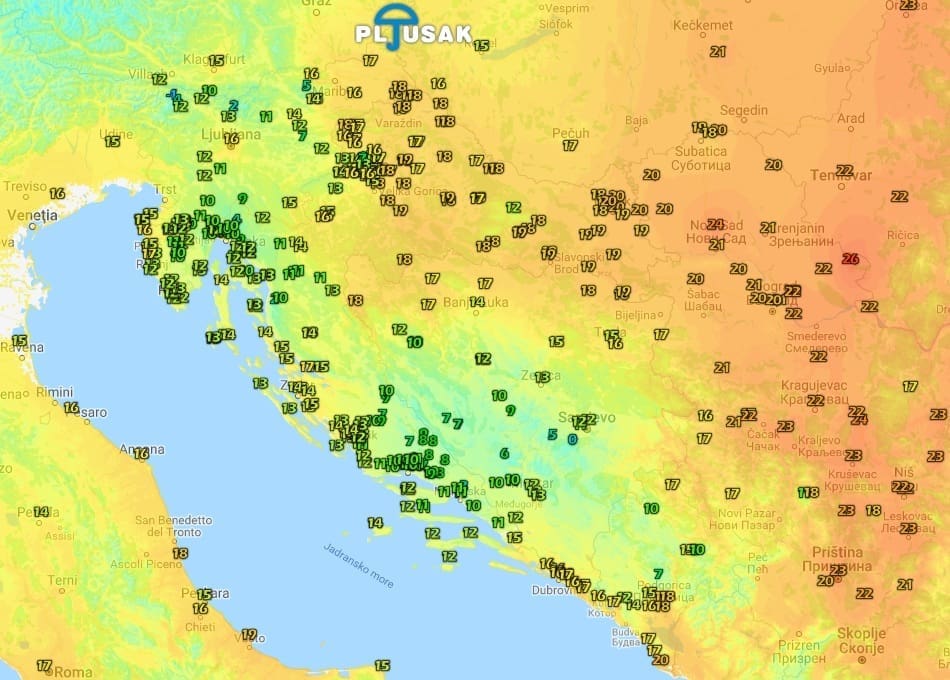 Najtoplije se zadržalo na krajnjem jugu, u Konavlima, s ugodnih 18 do 19°C.