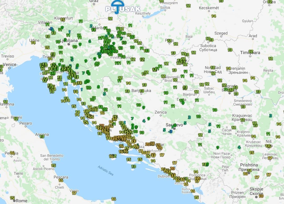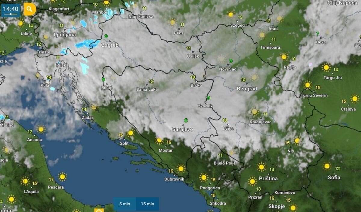 Veći dio zemlje danas prekrivaju oblaci, a na zapadu je palo i malo kiše. Tamo su popodne temperature zraka većinom od 7 do 13°C. U isto vrijeme, u Dalmaciji prevladava sunčano i natprosječno toplo.