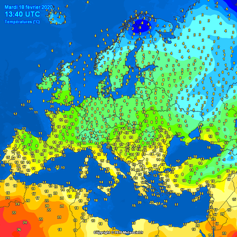 Najtoplije je u srednjoj Dalmaciji i zaleđu Šibenika gdje su temperature zraka od 15 do čak 20 Celzijevih stupnjeva. Danas je jug Hrvatske, uz Grčku i Španjolsku, bio najtopliji dio Europe.
