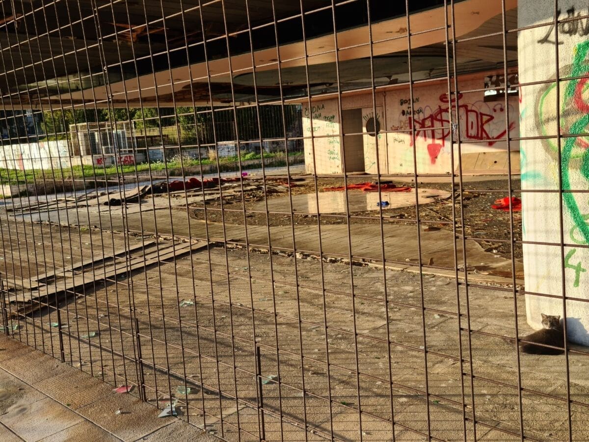 Istina, opisani dijelovi zgrade su ograđeni željeznom ogradom, no već na prvi pogled se vidi da u ograđeni prostor može ući bilo tko.