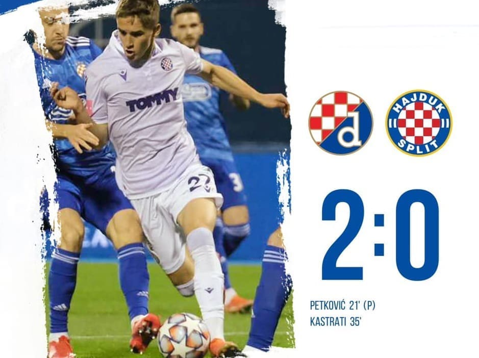 U 20. minuti Vušković je neoprezno skočio rukom skinuo loptu s Petkovićeve glave, a Bebek je pokazao na bijelu točku. Petković je bio i siguran izvođač za 1:0 u 21. minuti. Jurić je s druge strane lijepo zapucao s ruba šesnaesterca u 24. minuti, no Livaković je bio dobro postavljen. I Dinamov je protunapad bio opasan, Kastratijeva je lopta prohujala pred Kalinićem i stigla do Ademija, no njegov je udarac izbliza završio u bloku.
