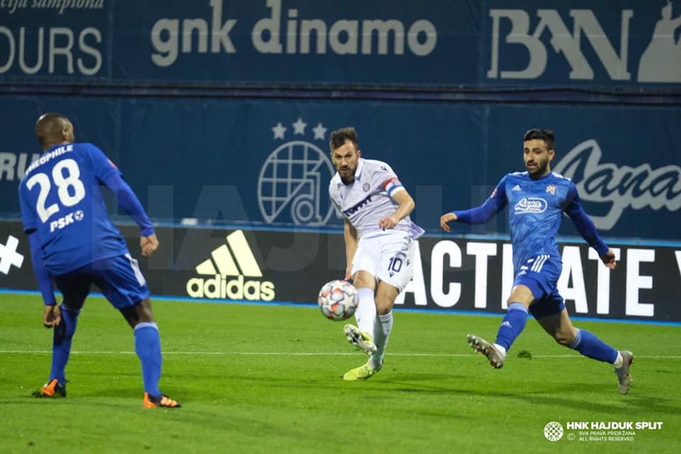 U petoj minuti nevjerojatna prilika Hajduka, Jradi je prošao po strani i dodao Caktašu koji se odlično riješio Moharramija, no lopta je završila na stativi. Međutim, već su u sljedećoj minuti Bijeli poveli sjajnim skokom Vuškovića nakon kornera. U 7. minuti Majer pada u šesnaestercu u kontaktu sa Simićem, Zebec nakon VAR konzultacija pokazuje na nastavak igre. U vrlo dinamičnoj utakmici mreža se u 11. minuti zatresla i na drugoj strani, Petković je zabio lijep pogodak su ruba šesnaesterca, ali opravdano je poništen zbog zaleđa Gavranovića.