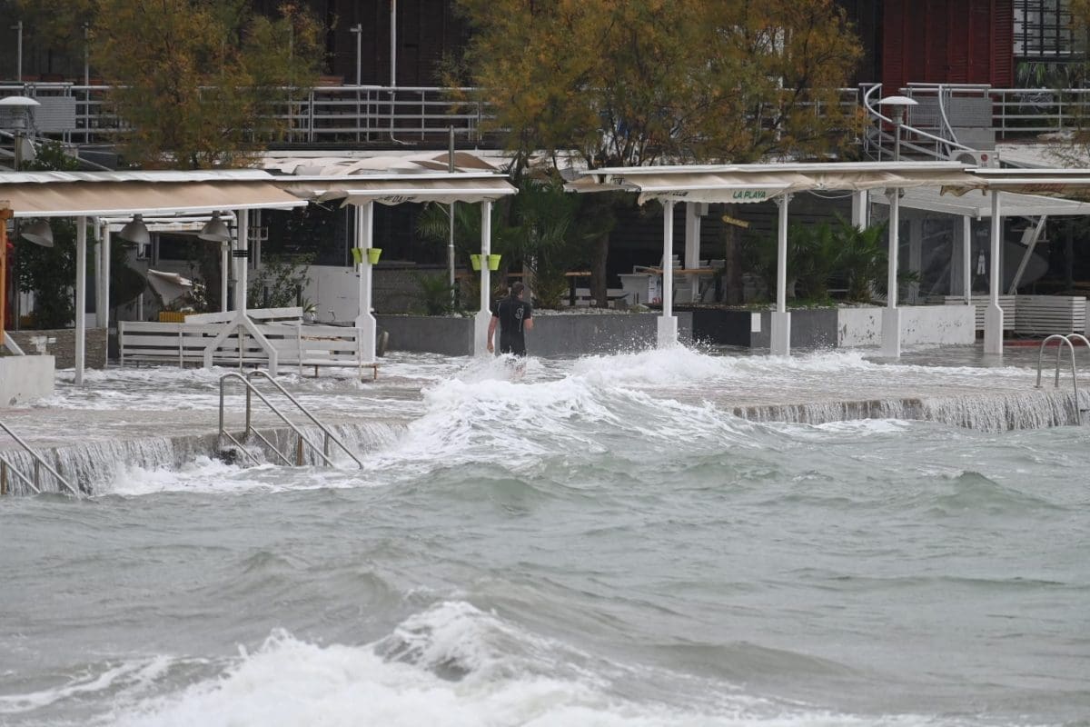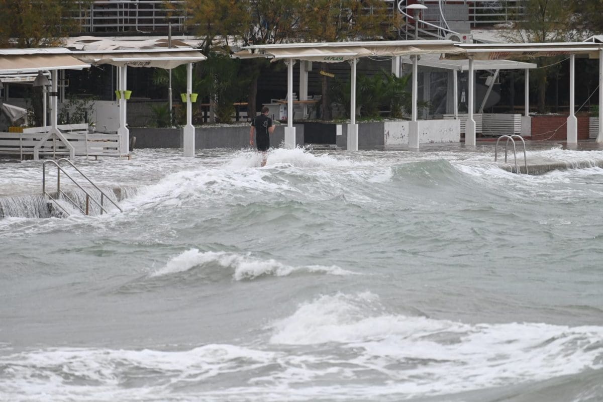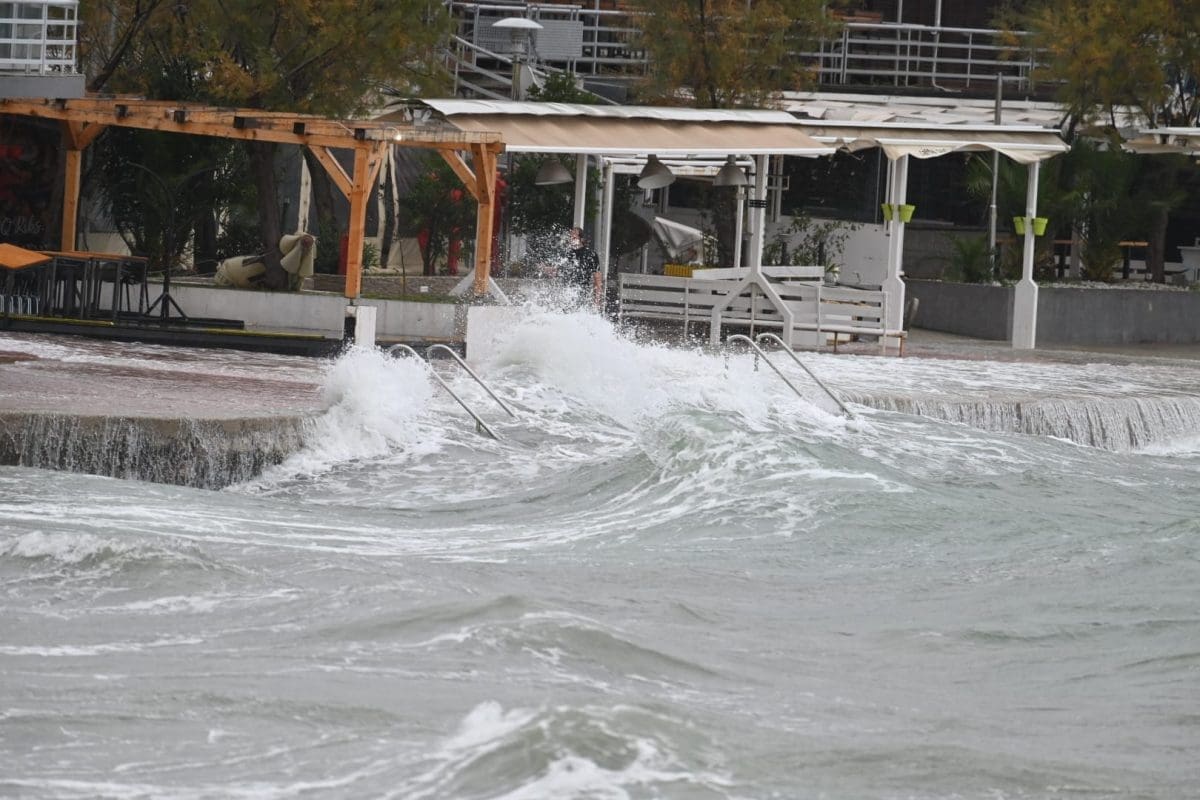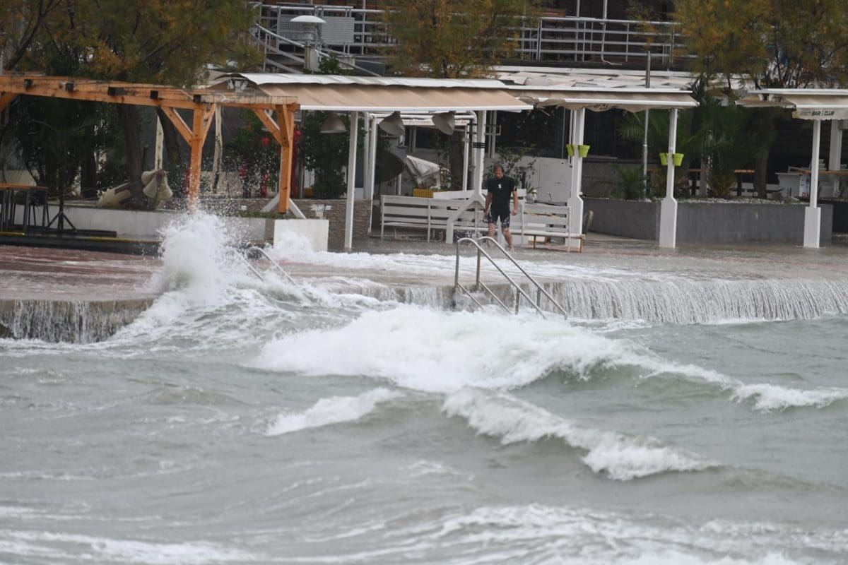 Pod vodom su se našli niži dijelovi obale, a ništa drugačije nije ni na splitskim Bačvicama gdje su šetnice i niži dijelovi obale pod morem. Na Bačvicama valovi i plima dižu valove do prvih štekata ugostiteljskih objekata, a jedan Splićanin nije propustio prošetati kroz valove i more.