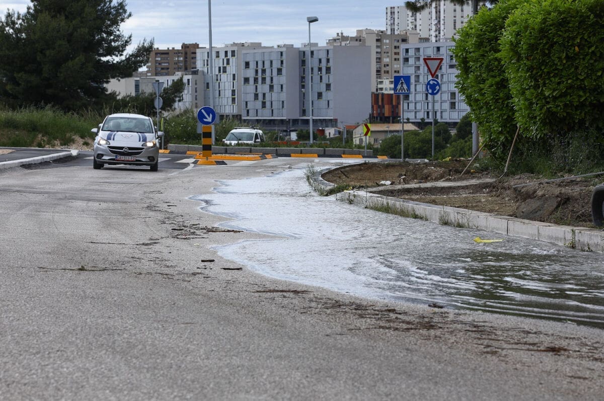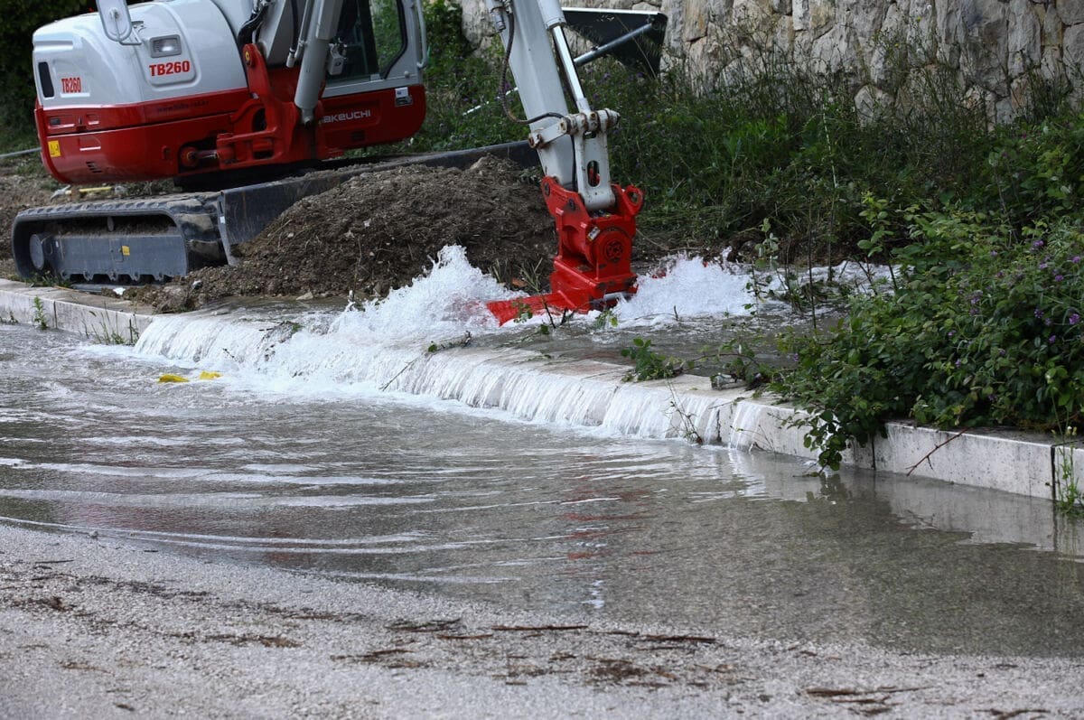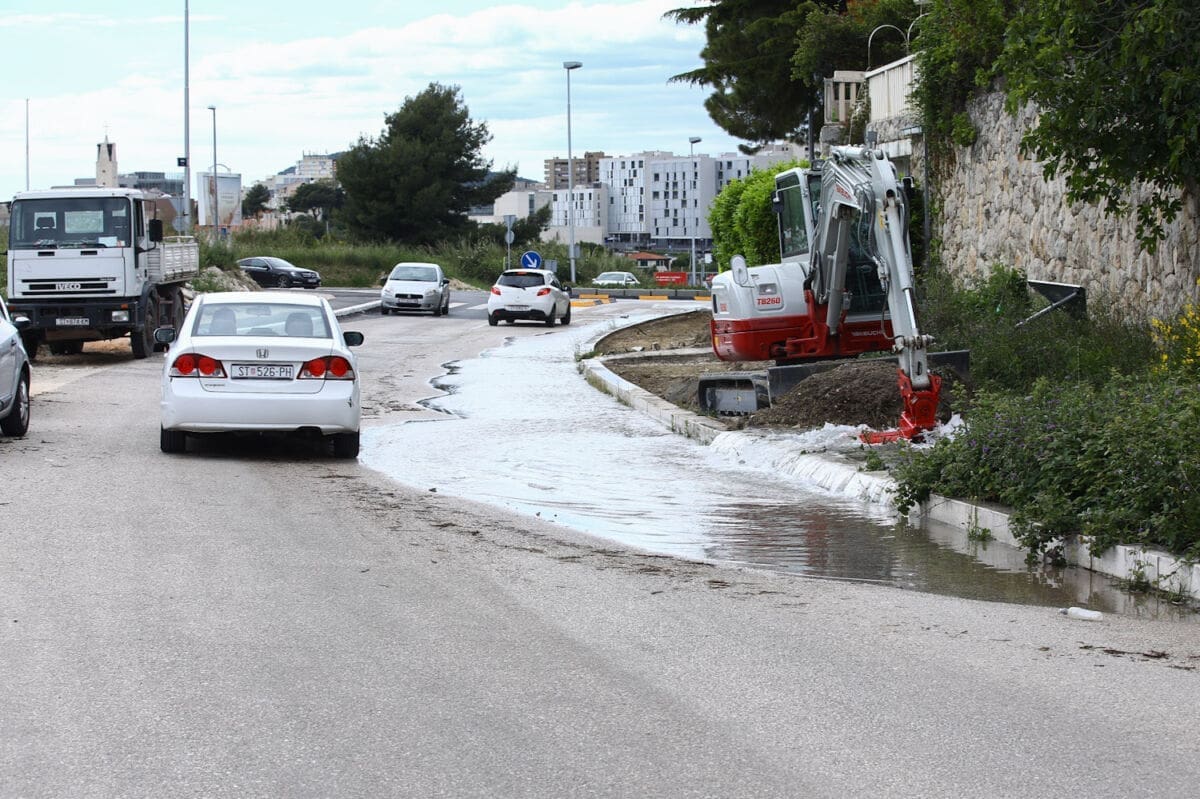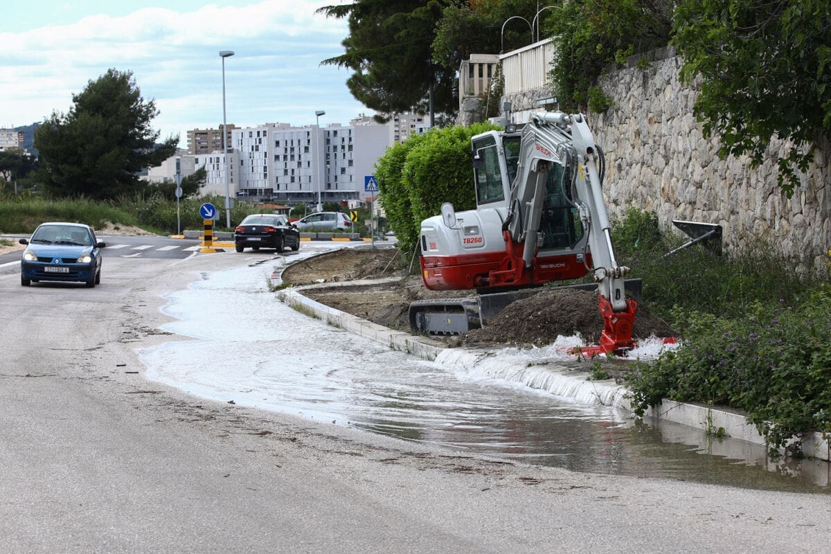 Prikom izvođenja radova u Bračkoj ulici došlo je do puknuća vodovodne cijevi.