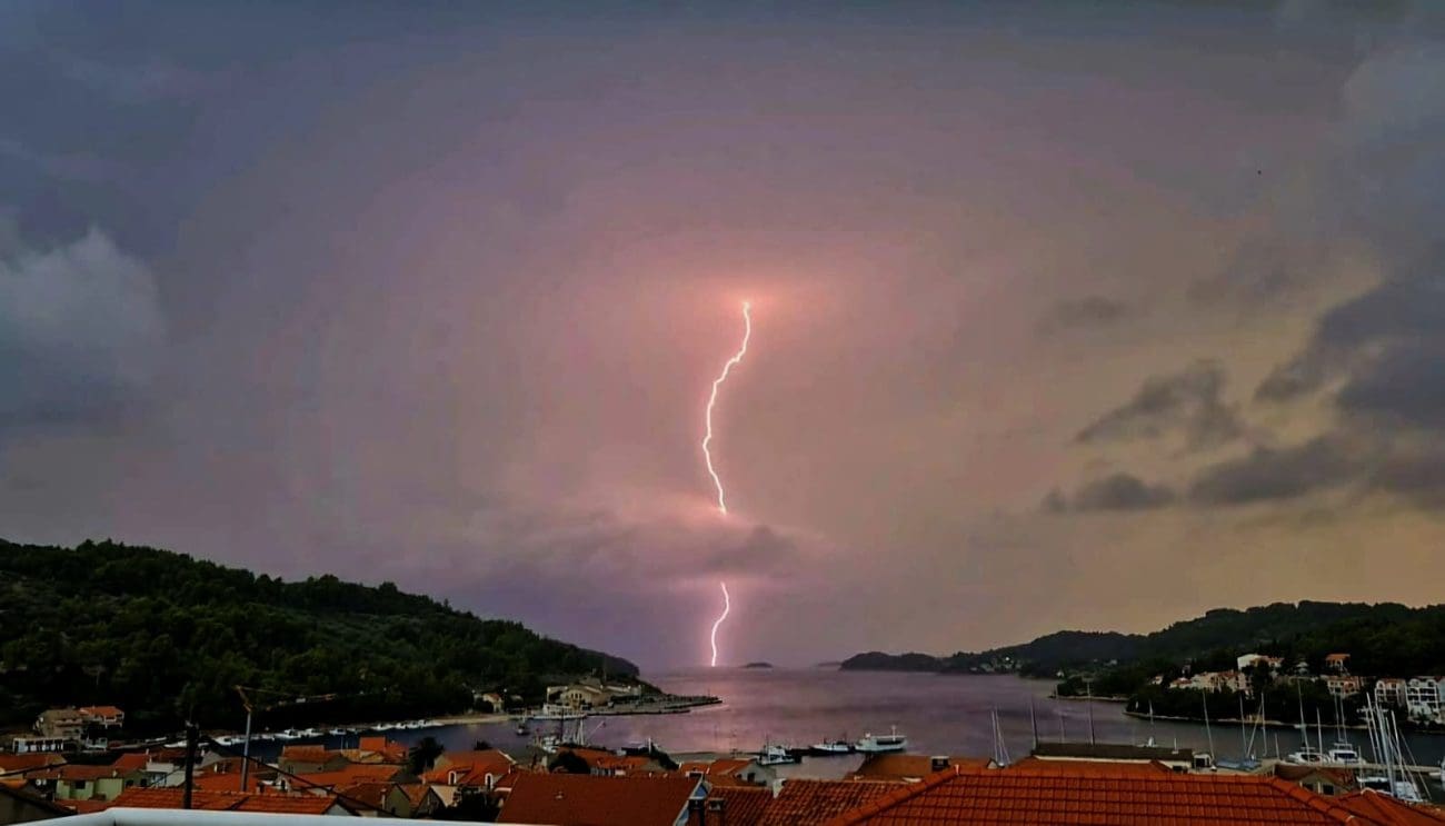 Jako grmljavinsko nevrijeme u večernjim satima zahvatilo je i Velu Luku, gdje je za kratko vrijeme palo 35 litara kiše po kvadratnom metru. Tijekom nevremena zabilježeni su olujni udari vjetra.