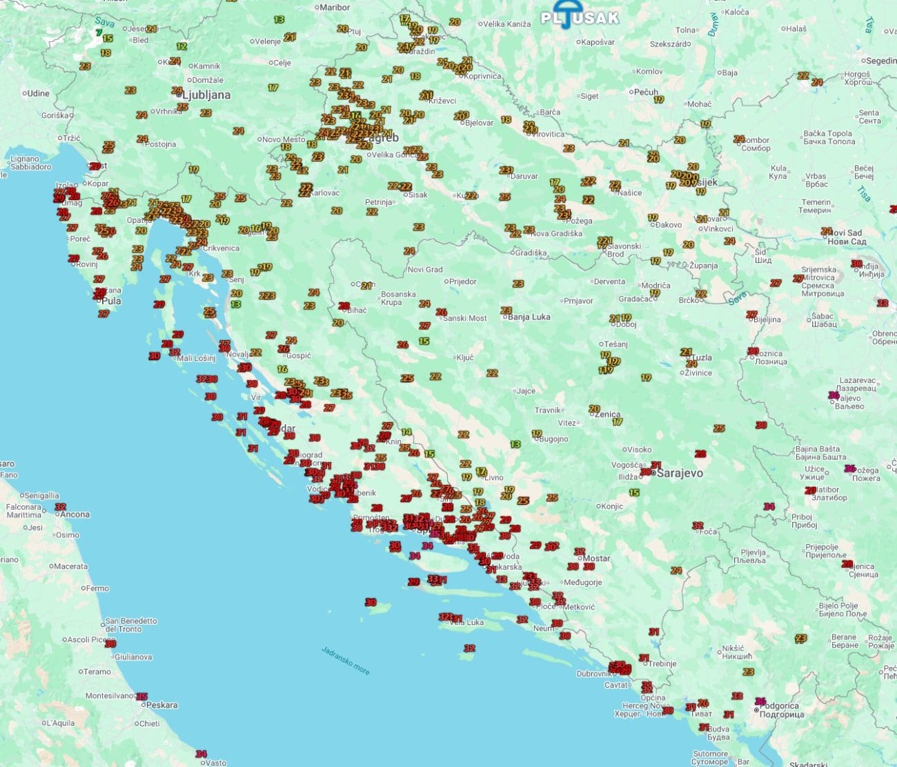 U unutrašnjosti zemlje temperature zraka su osjetno pale, ponegdje za više od 10 stupnjeva u odnosu na nedjelju. Promjena se noćas prvo osjetila na sjevernom Jadranu, potom na kontinentu, a popodne je zahvatila sjevernu i tek dio srednje Dalmacije.