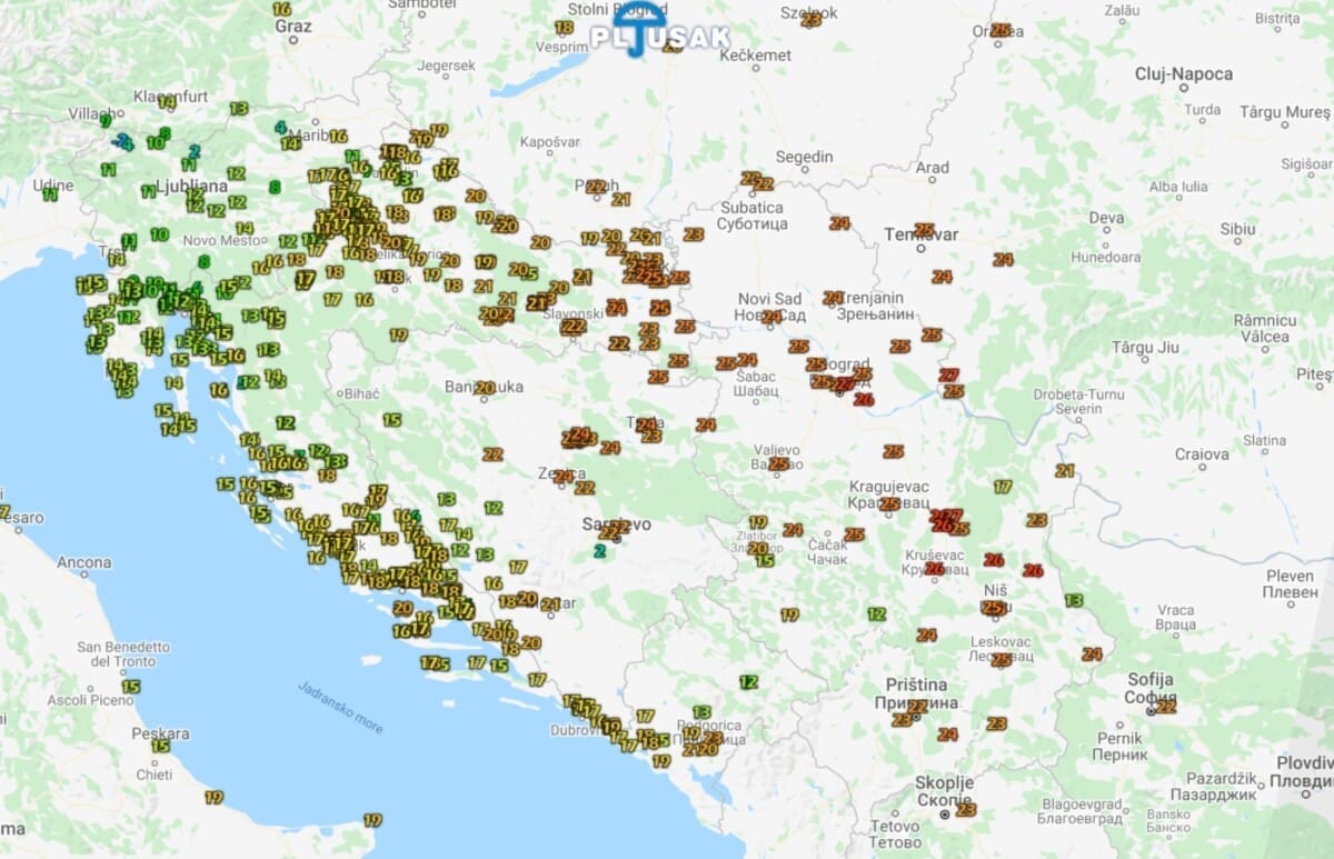 Promjena vremena najviše se osjetila na sjevernom Jadranu, tamo je lokalno već pala obilna kiša. Prema podacima mreže postaja Pljusak.com, do 19 sati čak 73 litre kiše po kvadratnom metru pale su u Ugrinima, 70 u Poljanama, a 66 u Lovranu.