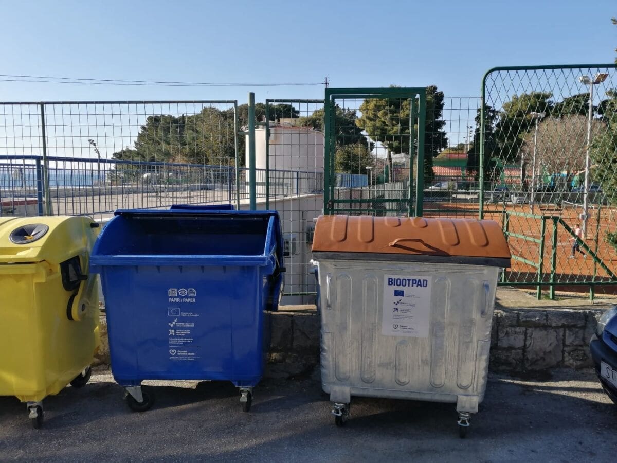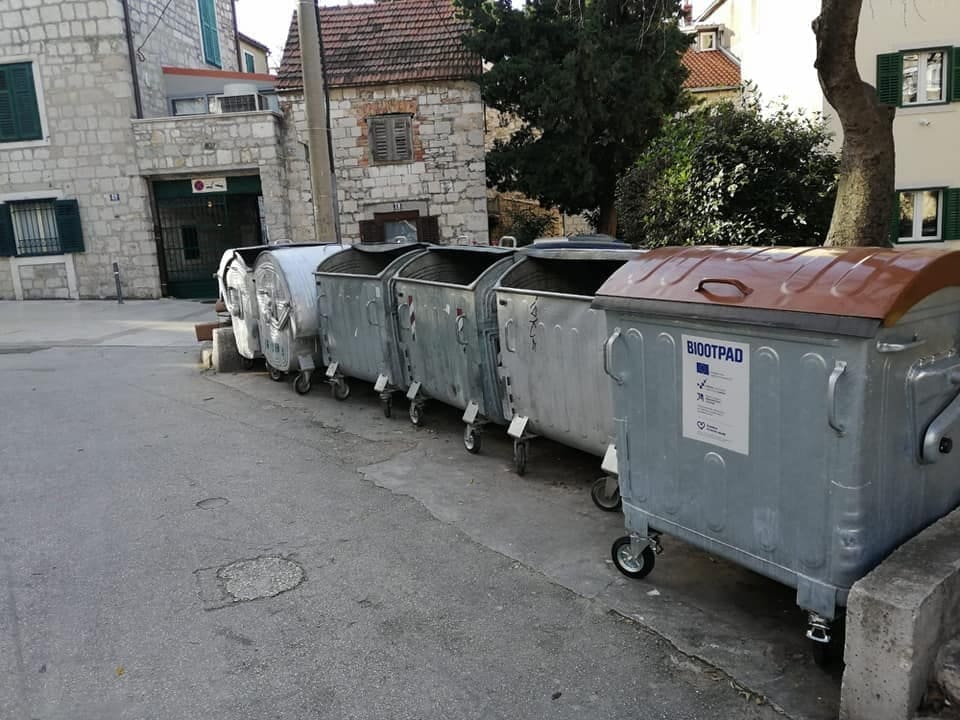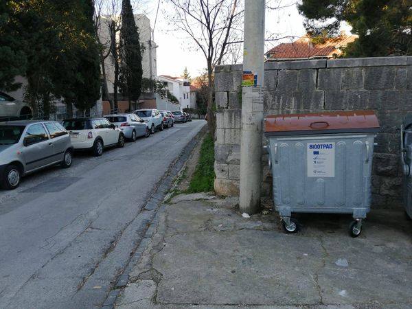 Postavljanje spremnika za biootpad kontinuirano traje. Na fotografijama vidimo novopostavljene kontejnere u Hercegovačkoj ulici u Kopilici. Do kraja ožujka ukupno će na splitske javne površine biti postavljeno 1700 kontejnera za biootpad od 1100 litara.