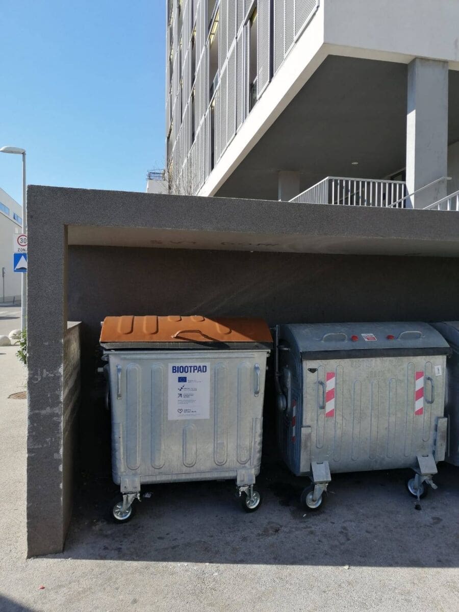 Kontejneri za biootpad razlikuju se od kontejnera za miješani otpad po smeđem poklopcu te natpisu na prednjoj strani koji označava da je riječ o kontejneru za biootpad.