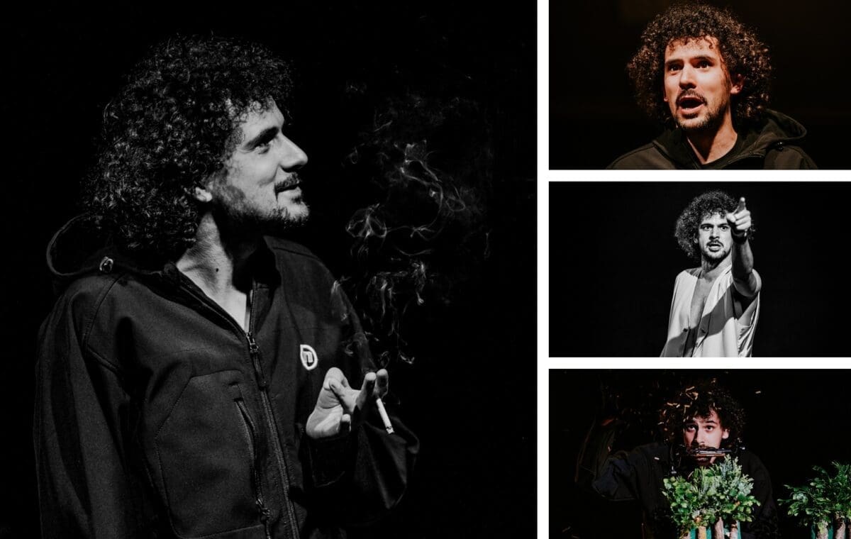 Kondža je duboko uronjen u svoju monodramu već i za vrijeme ulaska publike. Prati gledatelje raskoljnikovljevski nervoznim pokretom, naslonjen na neuredan radni stol koji jasno sugerira da se radi o umjetniku usred stvaralačkog procesa – koji je debelo zapeo već na samom početku. Kondžin koncept zapravo otvara tradicionalnu temu – pitanje umjetničke inspiracije, prostora gdje se oslobađa genius, ali pakira je u sasvim novo ruho – 2023., njegovu okolinu, njegov fakultet, profesore, kolege, ali i tržište rada na koje novopečeni glumac odlazi nakon što se svjetla pozornice ugase i pljesak dobronamjernih istomišljenika utiša.