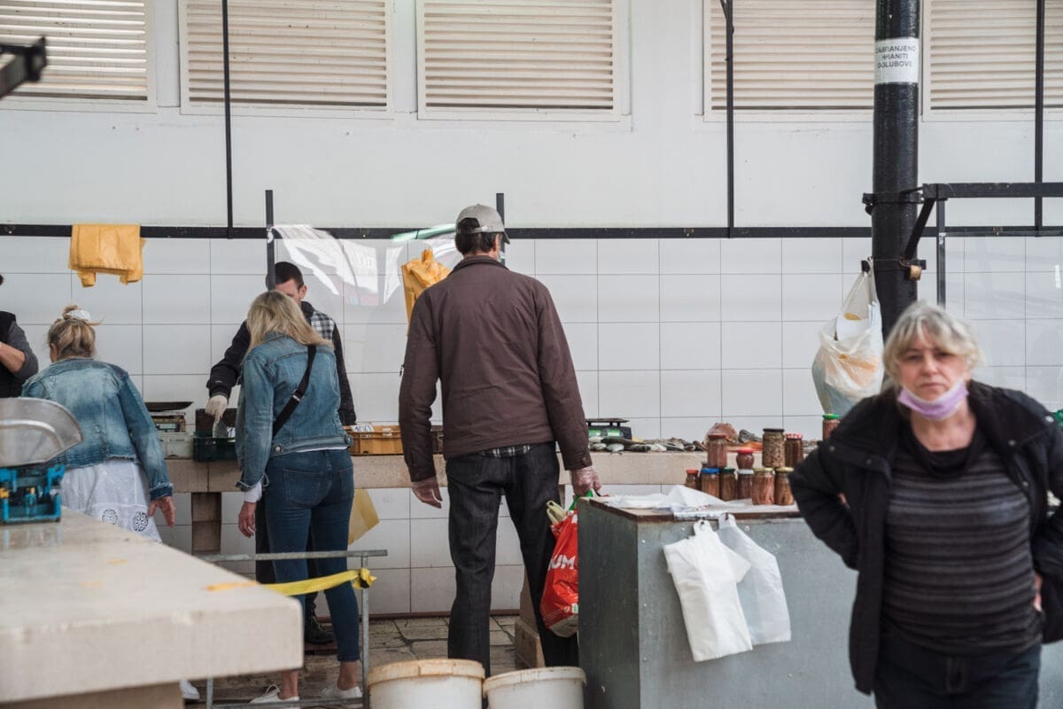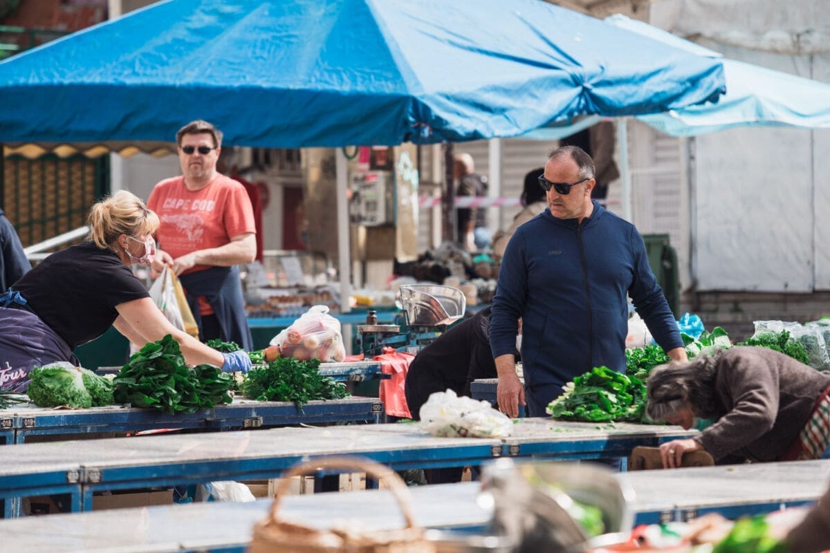 Šetajući do Pazara naletjeli smo na dugi red, koji se protezao sve do gimnazije, a Civilna zaštita je s velikim oprezom pratila poštuju li se mjere. Ponuda je kao i inače obilna, a nismo mogli ne primijetiti da su cijene osjetno veće negoli u trgovačkim centrima. To su nam potvrdili i brojni kupci.