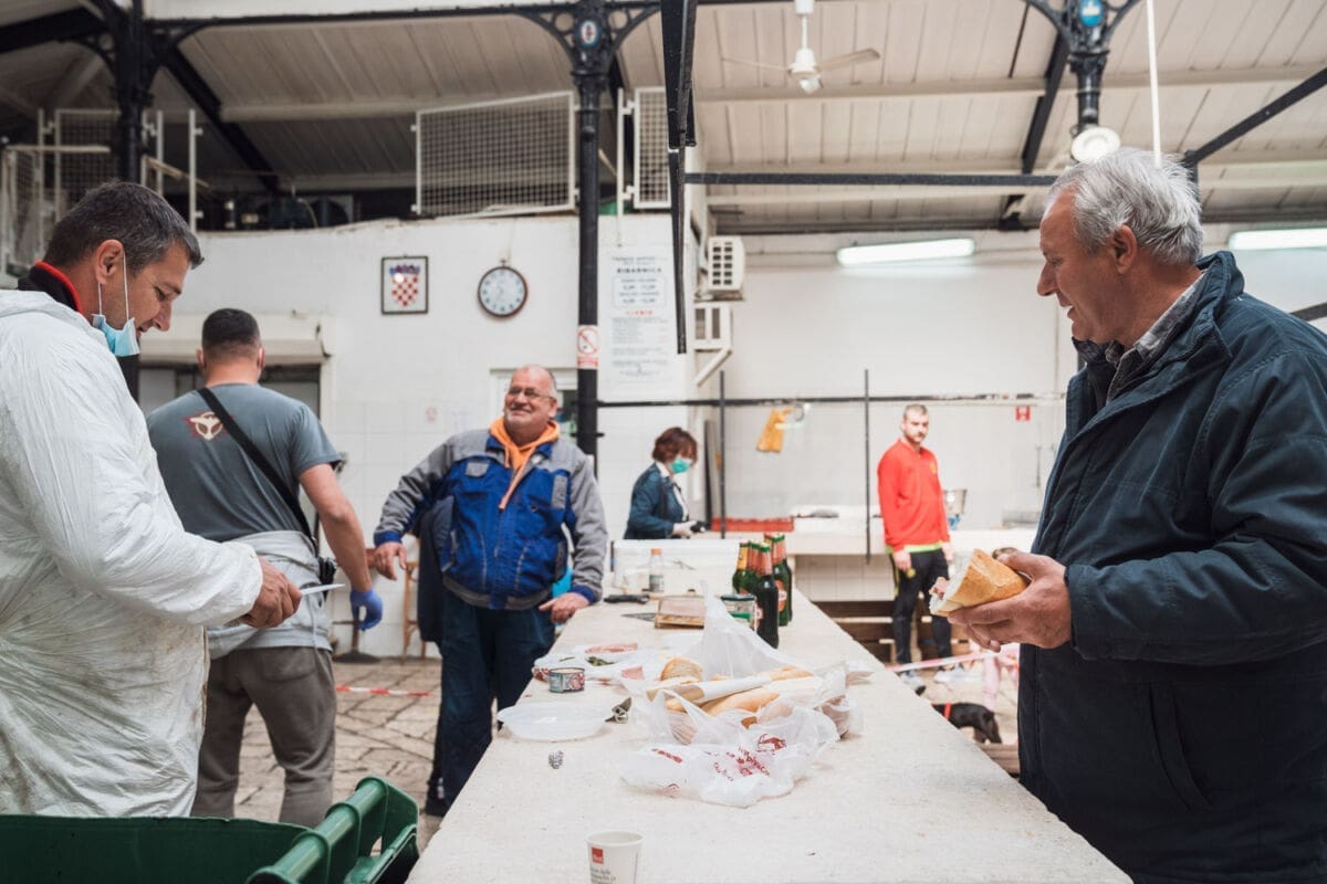 Kako se može vidjeti, u ribarnici je danas bilo manje ljudi negoli jučer, što je razumljivo zbog toga što je petak po običaju dan kada se proda najviše ribe. Nazočni su poštovali propisane mjere.