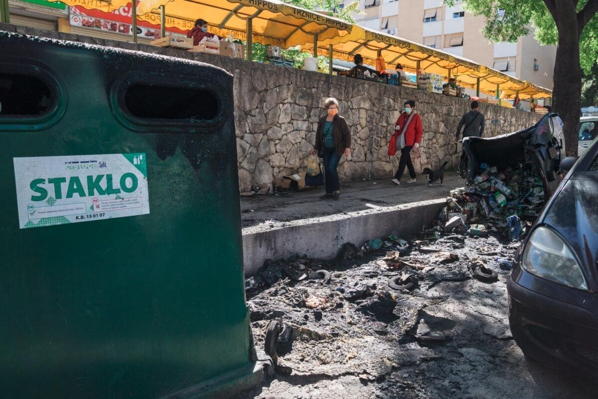 Danas smo napravili đir Plokitama. Tržnica je bila puna ljudi koji su pohrlili obaviti kupovinu, ali moramo pohvaliti da se većina njih pridržavala mjera. Ulice su većinom bile prazne, a u oči bode zapaljeni kontejner, koji je sve češća pojava koju iznjedri splitska noć.