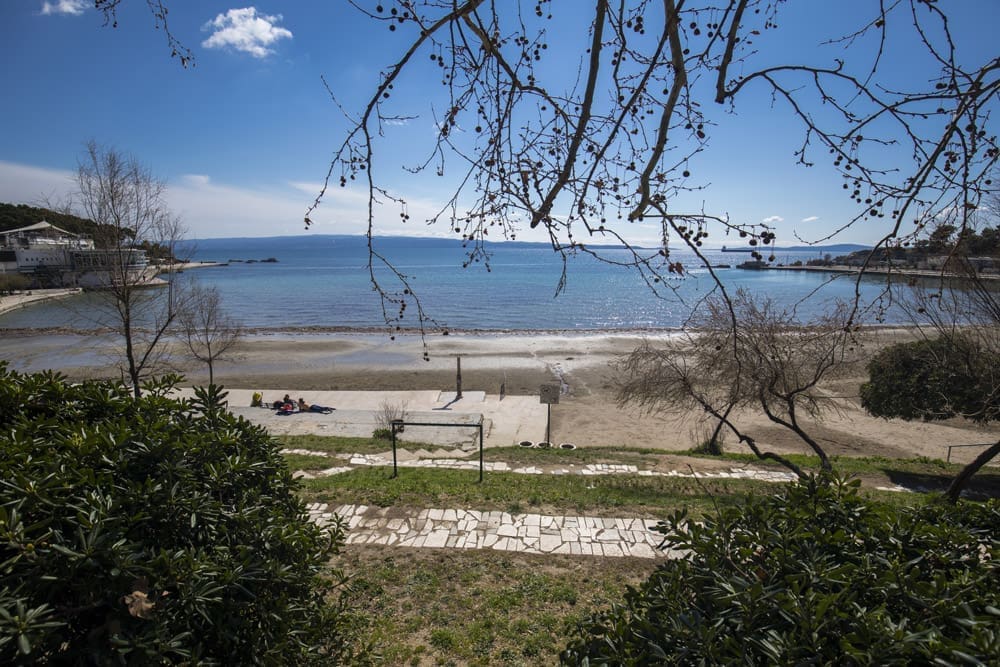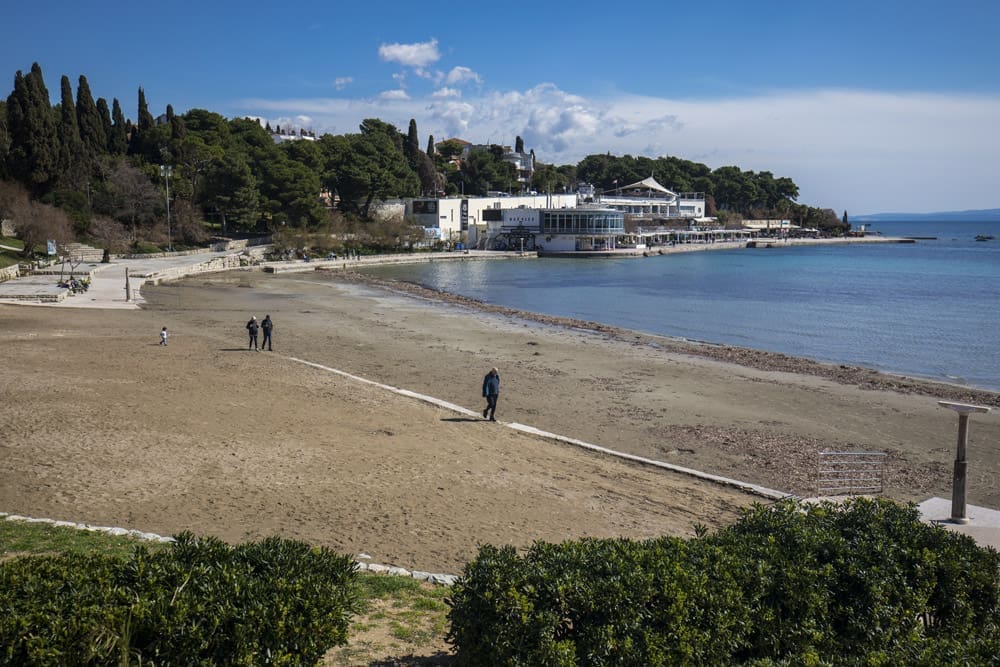 Toplo sunce i lagani povjetarac izmamili su danas stidljive Splićane na popularnu splitsku plažu Bačvice.