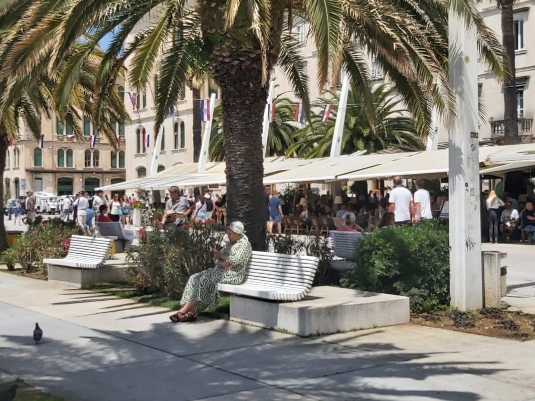 Prošetali smo samim centrom Splita i ljudi nije nedostajalo. Na svakom uglu obitelji s djecom uživaju u slobodnom danu, a rashlađuju se sladoledom u ono malo hladovine što se na splitskoj Rivi može uhvatiti.