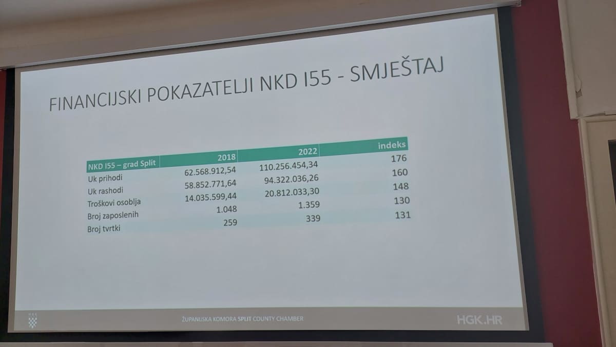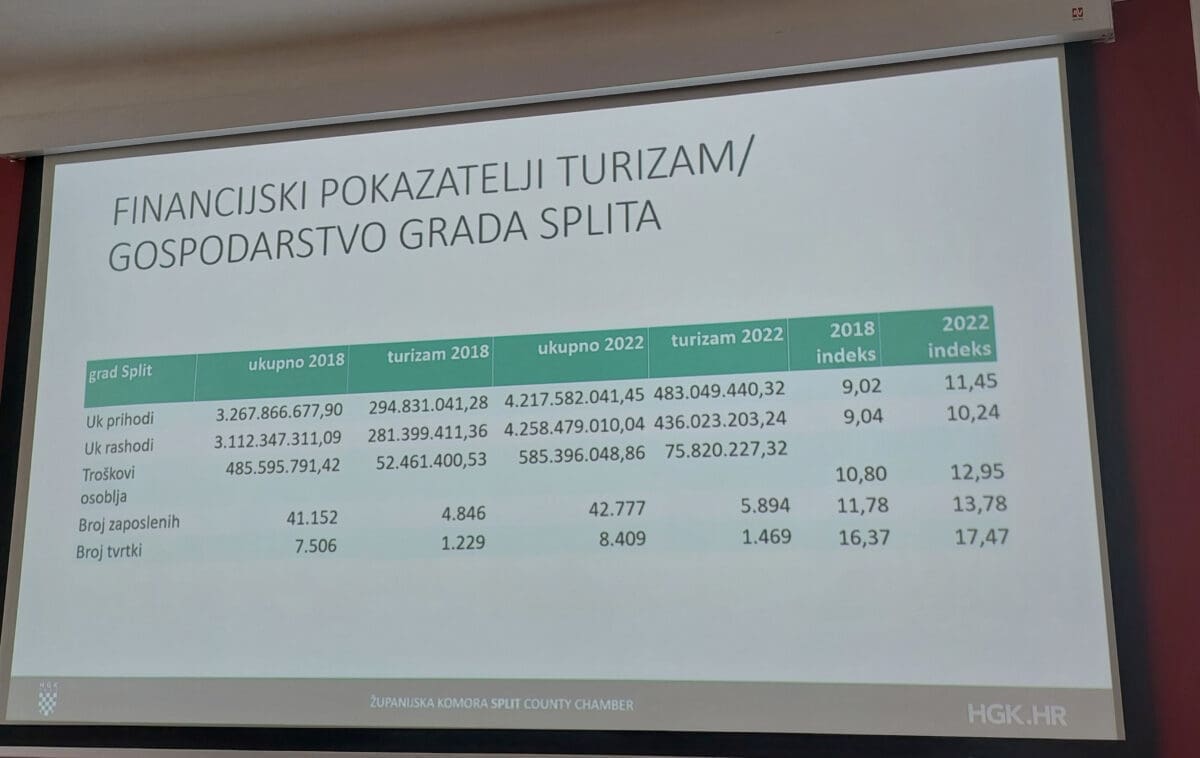 Joze Tomaš, predsjednik Županijske komore HGK-a predstavio je gospodarske pokazatelje ali bez privatnog malog smještaja. Naveo je kako je u Splitu turizam najvažnija gospodarska grana sa 17 posto tvrtki i 14 posto zaposlenih.