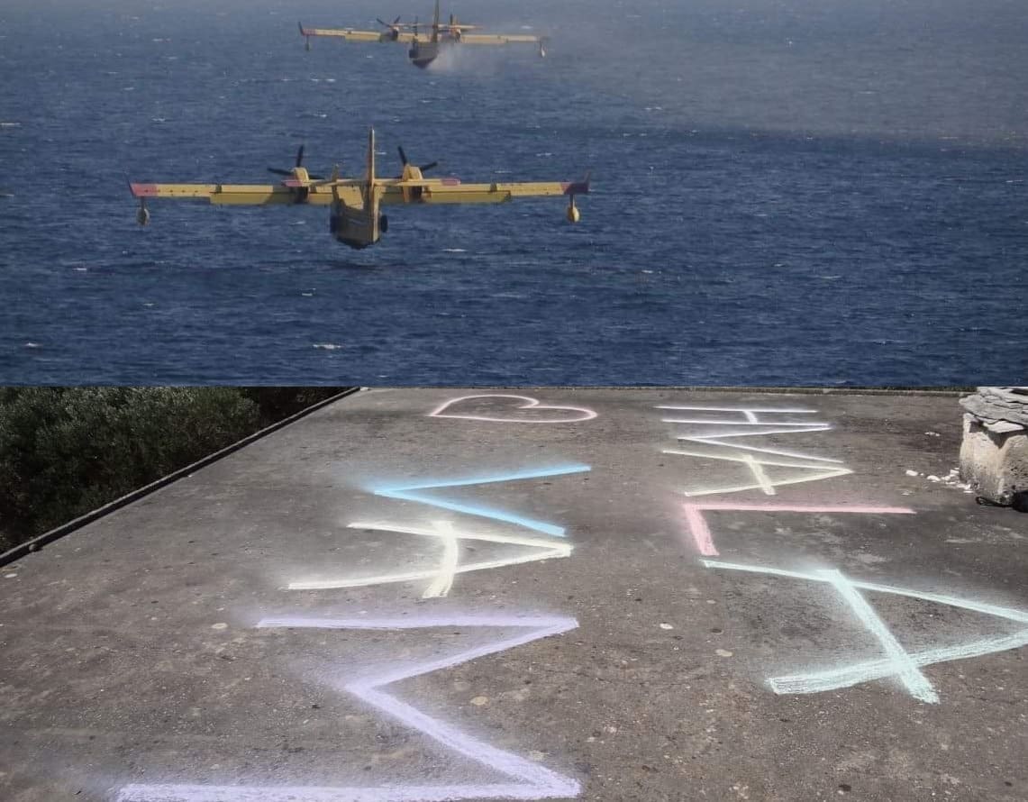 S Korčule nam stiže i jedna lijepa priča vezano uz napore zračnih snaga da ugase požar. Naime, Korčulanka Danijela Šeparović je na Blacima na pilotima kanadera ispisala veliki znak zahvale "Hvala vam", uz srce.