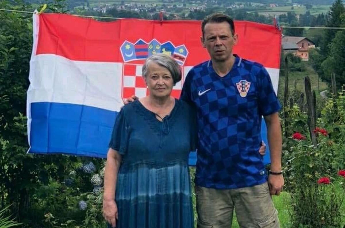 Lyliane Fournier i Paul Nicolier, majka i brat vukovarskog heroja Domovinskog rata Jean-Michela Nicoliera, fotografirali su se uz hrvatsku zastavu uoči velikog finala između Hrvatske i Francuske .