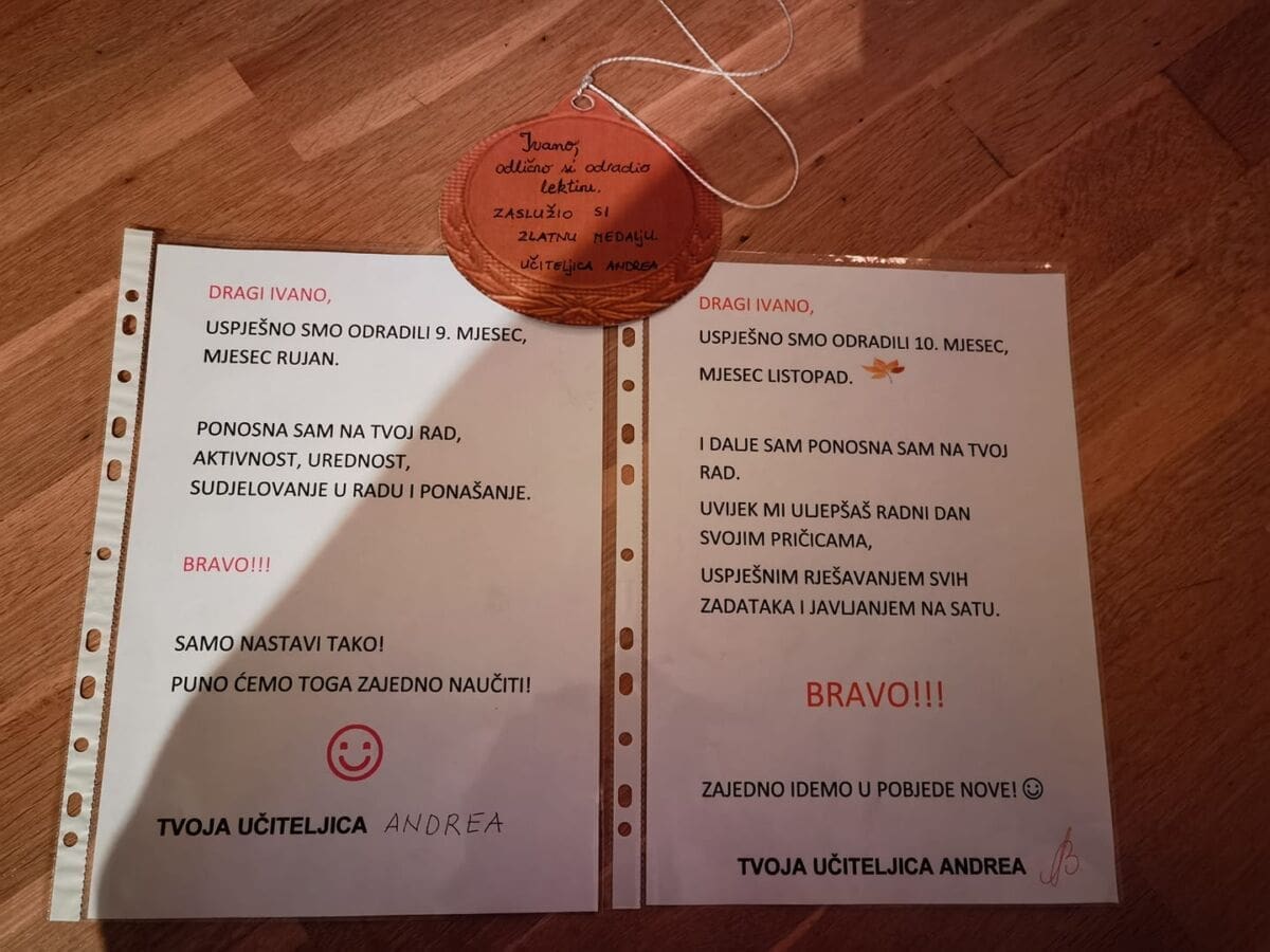 Za lektiru, odlučila ga je nagraditi zlatnom medaljom. Bog zna da on pojma nema što znači pojam "lektira".