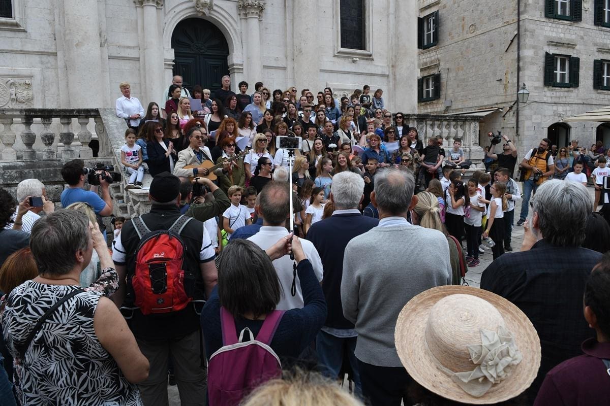 Brojni Dubrovčani, a ponajviše oni čija je djetinjstva obilježilo pjevanje u ‘Malom raspjevanom Dubrovniku’ ovog su se ponedjeljka pjesmom na skalinima Crkve sv. Vlaha oprostili od svoga ‘dunda’ Đele Jusića. "Tići Gundulići" okupili su se na inicijativu dubrovačke novinarke Ivane Mijić Vulinović kako bi odali počast dubrovačkom skladatelju, aranžeru i dirigentu, ujedno i osnivaču ‘Malog raspjevanog’ koji nas je proteklog petka napustio u 81. godini života.