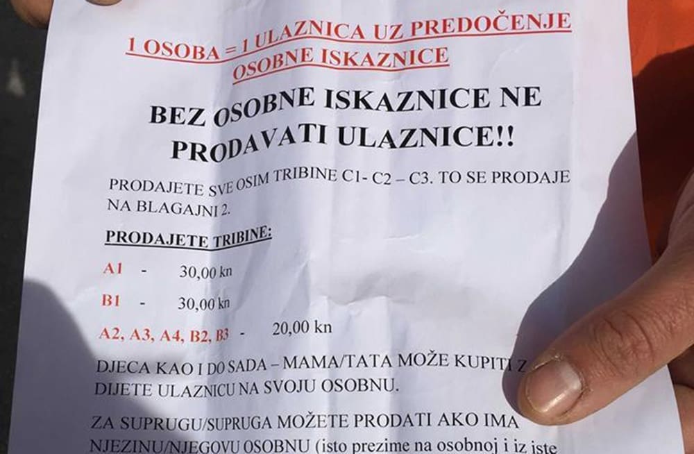 Naime, prodavači karata su dobili upute da legitimiraju navijače te da karte prodaju samo onima koji dolaze iz Koprivničko-Križevačke, Varaždinske, Međimurske, Bjelovarsko-bilogorske i Virovitičko-podravske županije.