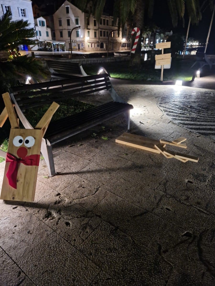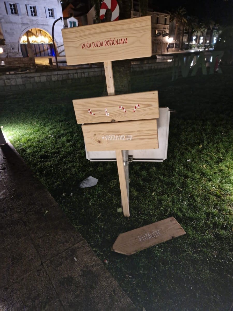 Kućica Djeda Mraza, postavljena u hvarskom gradskom parku na radost najmlađih, baš kao i ostali ukrasi i paketići kojima su Grad Hvar, Turistička zajednica grada Hvara i Studio Cvit uljepšali javne površine u adventu, preživjela je prve napade već nekoliko dana nakon postavljanja.