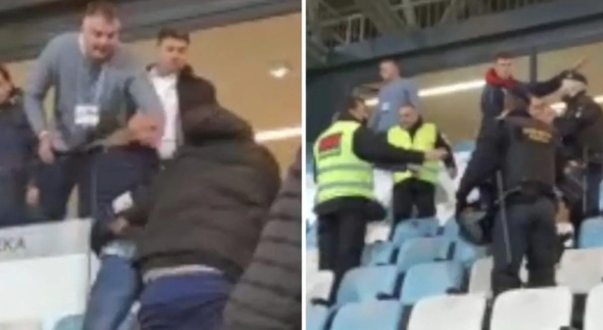 Nepoznati navijač psovao je prema mnoštvu i svađao se s redarskom službom te očito isprovocirao drugog koji je preko stolica 'poletio' prema njemu i došao direktno na direkt u glavu. Krenule su tu salve uvreda s domaće tribine, ali nitko se nije pridružio izgredima već su se zadržali samo na verbalnom.