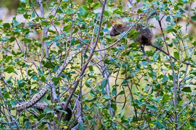 Ne mareći za vlastitu sigurnost, miš se prvo okušao u zastrašivanju zmije. Kad to nije upalilo, hrabro se zabacio i zubima zagrizao u zmiju, te ostao visiti na njoj neko vrijeme.