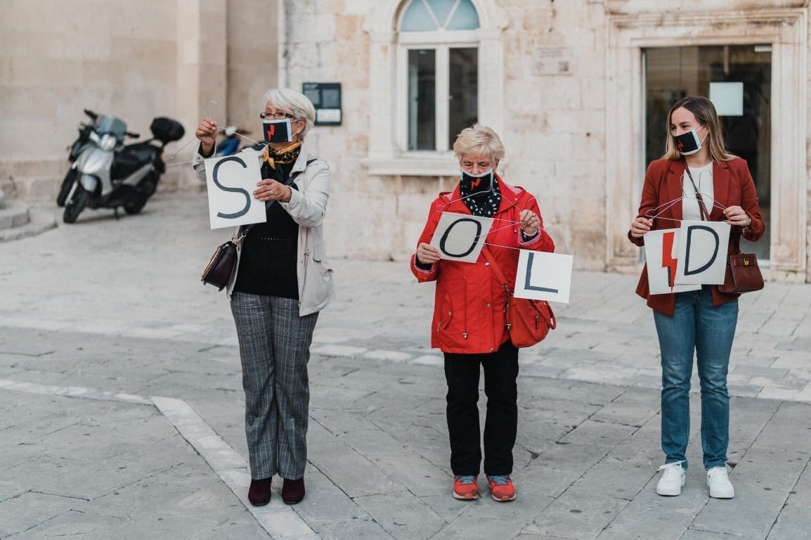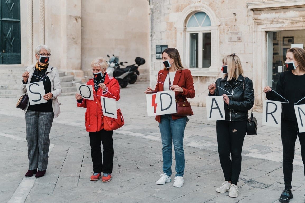Na trogirskom trgu danas je neformalna skupina žena svojim okupljanjem i performansom također poduprla žene u Poljskoj, a kako je to izgledalo, pogledajte u priloženoj fotogaleriji.