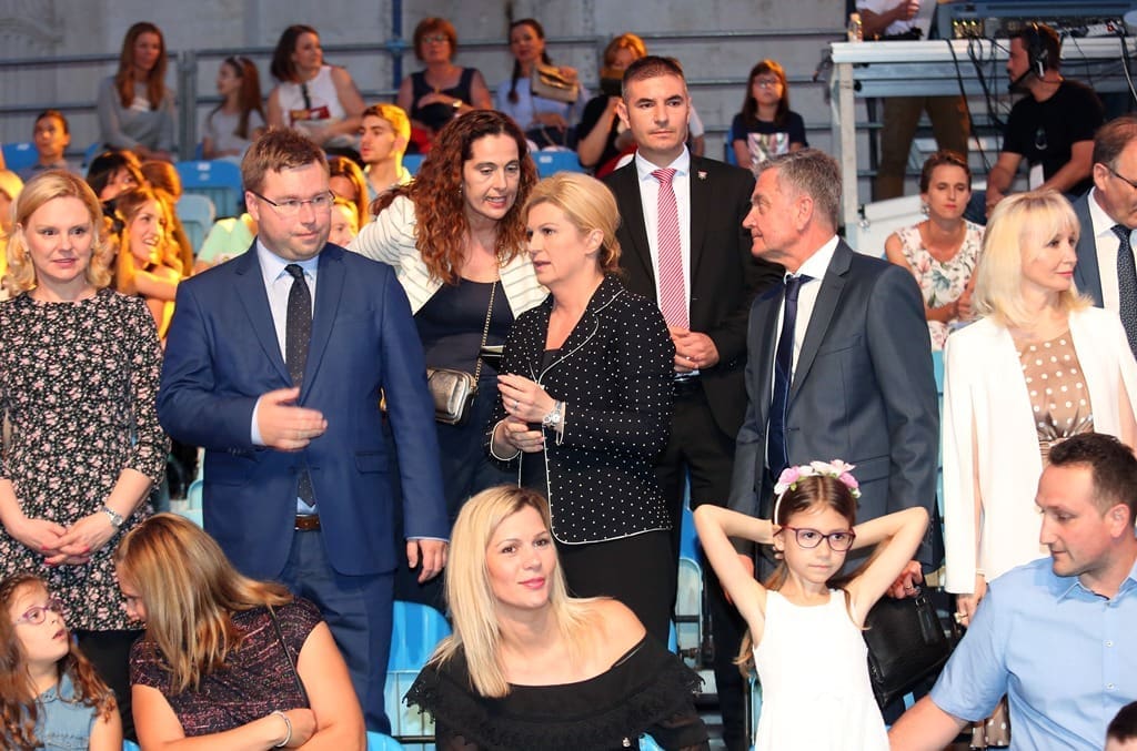 Među brojnom publikom, sjedila je i predsjednica Kolinda Grabar – Kitarović u pratnji ministra rada i mirovinskog sustava, Marka Pavića, te predstavnika Grada Šibenika i Šibensko – kninske županije. 'S velikim sam veseljem danas s vama ne samo kao pokroviteljica već i kao prijateljica i pratiteljica. Najprije kao dijete u svom djetinjstvu i mladosti, a potom i kao majka zajedno sa svojom djecom koja su rasla na ovom festivalu, na ulicama prekrasnog Šibenika. U bezbroj prigoda uvjerila sam se kako doista živite sa svojim festivalom cijelu godinu pripremajući ga i veseleći se svakom njegovom izdanju', kazala je predsjednica u svom obraćanju.