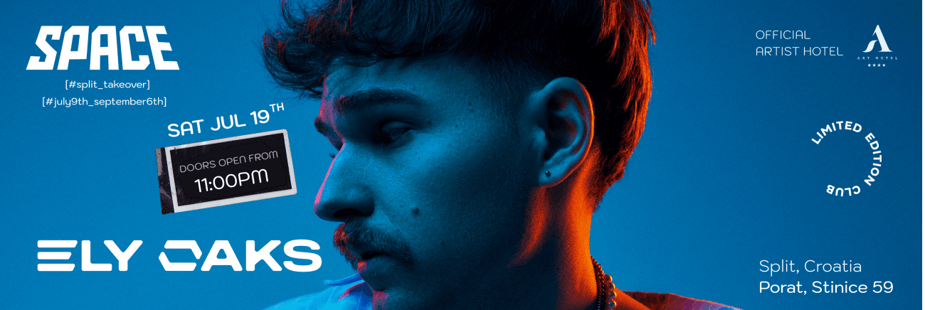 “Ely Oaks je jedno od najuzbudljivijih imena nove generacije. Njegov glazbeni izraz savršeno spaja dvije publike – onu koja voli sirovi, podzemni zvuk i onu koja traži euforične dropove. Sretni smo što ga možemo ugostiti u Pop Upu, na mjestu koje ovog ljeta postaje novo srce splitskog noćnog života,” navode iz SPACE-a.