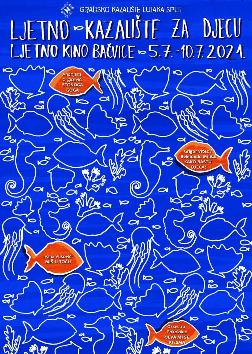 Program se sastoji od tri izabrana naslova GKL-a Split i jednog gostujućeg, Orkestra Pokoloka iz Zagreba. Ljetno kazalište otvorit će 5. srpnja hit predstava 'Stonoga Goga' kojoj se publika uvijek iznova veseli. Ovaj mali kazališni mjuzikl, nastao prema tekstu Andrijane Grgičević, namijenjen je djeci već od 3 godine starosti, a u predstavi igraju Alin Antunović, Ivan Medić i Branimir Rakić.