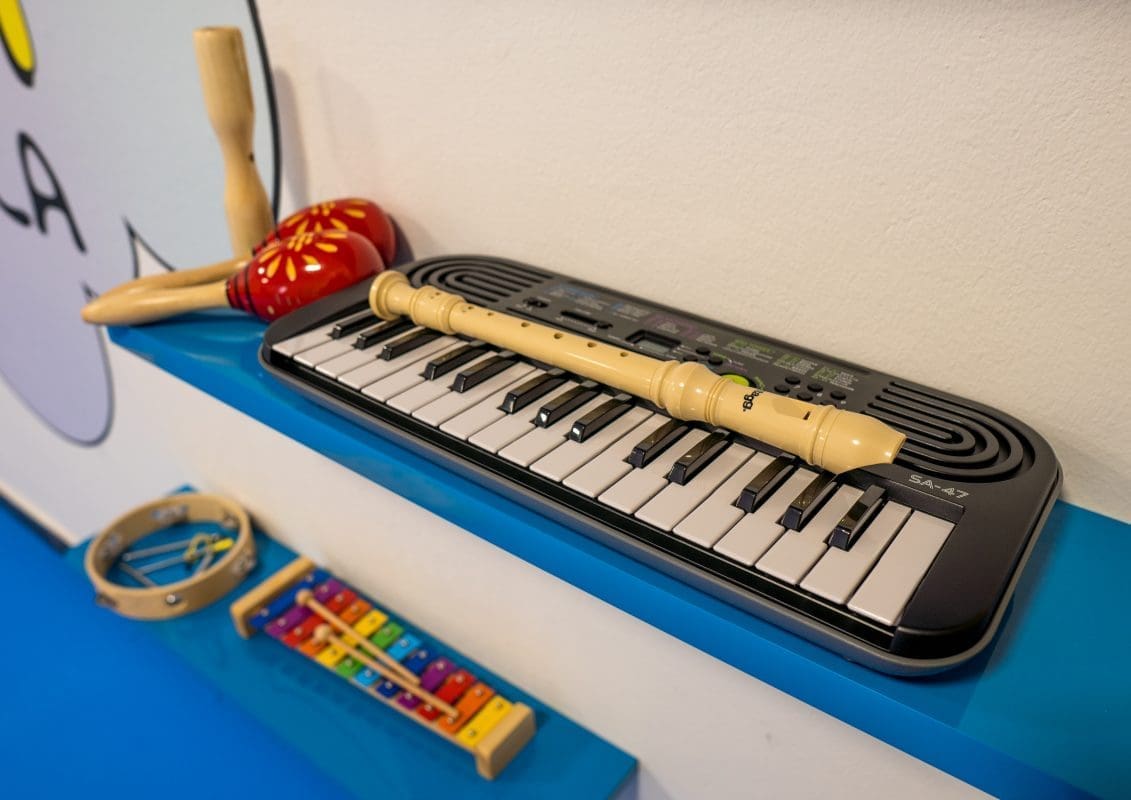 Osim pjevanja, pokreta uz glazbu, slušanja glazbe i glazbenih igara, djeca će imati priliku učiti svirati tri instrumenta: sintisajzer, blok flautu i ukulele. Kako bi proces učenja bio što kvalitetniji i uspješniji, formiraju se grupe od sedmero djece i na radionicama svako dijete ima svoj instrument.