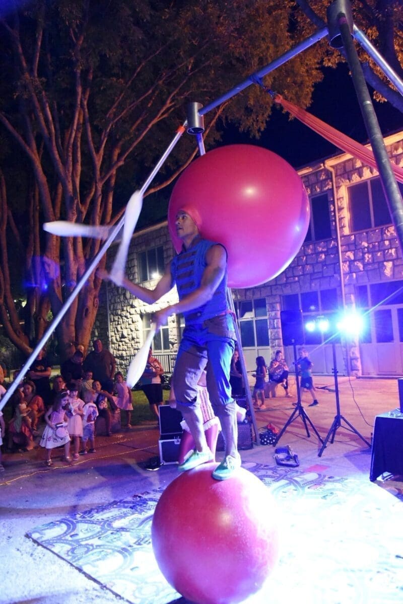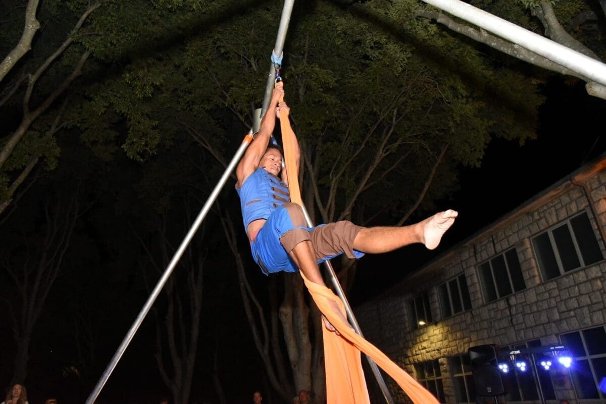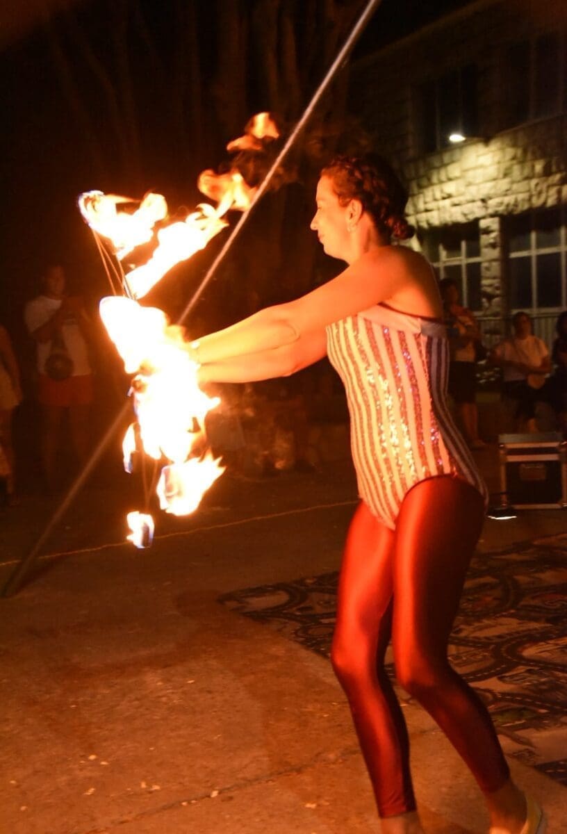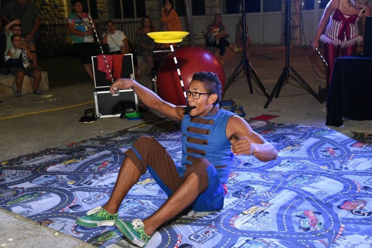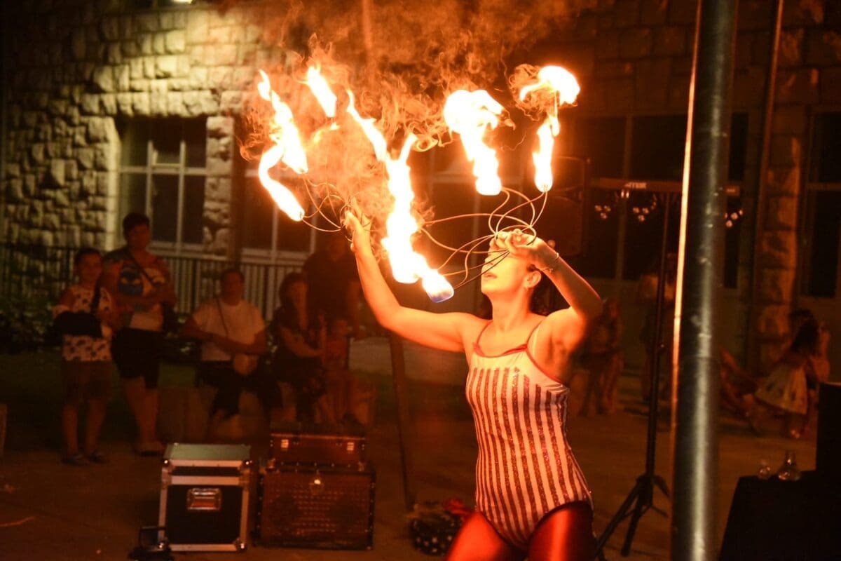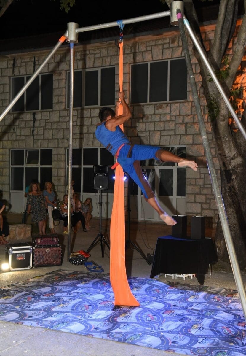 Dva animatora s dugogodišnjim iskustvom u animaciji vodila su sinoć djecu kroz različite aktivnosti – cirkusku predstavu s trikovima u kojima su sudjelovala i okupljena djeca. Bilo je tu i ludih akrobacija, trikova s vatrom, plesa na svili i igre. Već od prve minute zaokupili su dječju pažnju koja su znatiželjno i s oduševljenjem pratila svaki pokret animatora.