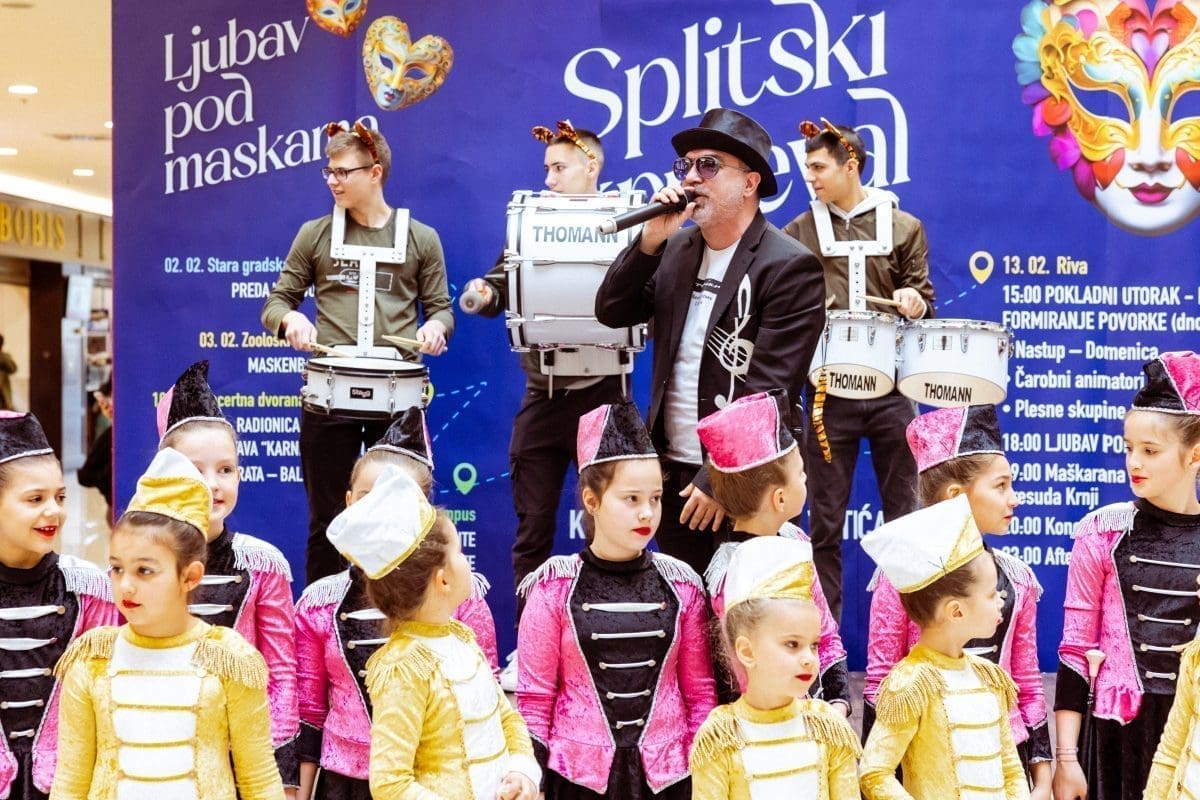 Program su otvorile mažoretkinje Grada Splita, osvajačice brojnih medalja, a za njima je centrom prodefilirala vesela i šarena povorka malih maškara.