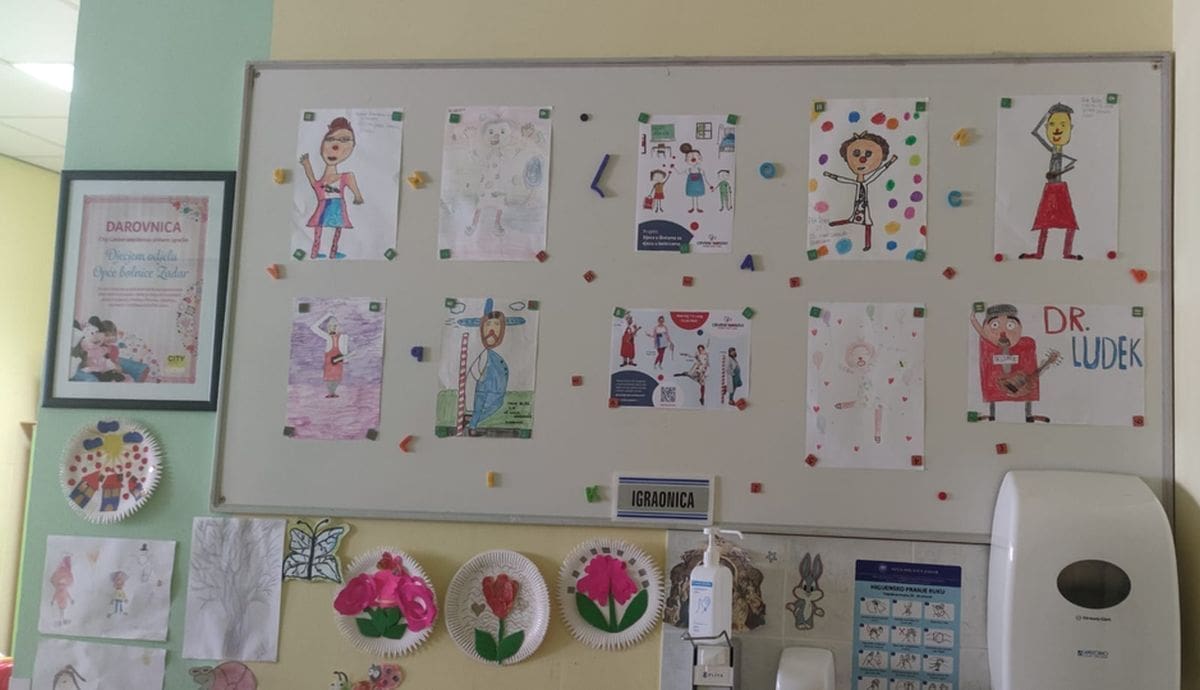 Djeca u školama za djecu u bolnicama'' uspješan je projekt Udruge CRVENI NOSOVI klaunovidoktori kojim su, s ciljem povezivanja školaraca i djece na bolničkom liječenju, ovoga ljeta bolnice ispunili šarenim izložbama dječjih crteža i porukama podrške. Crteži školaraca ovoga ljeta uveseljavaju i djecu na liječenju u bolnicama u Zadru, Šibeniku i Splitu.