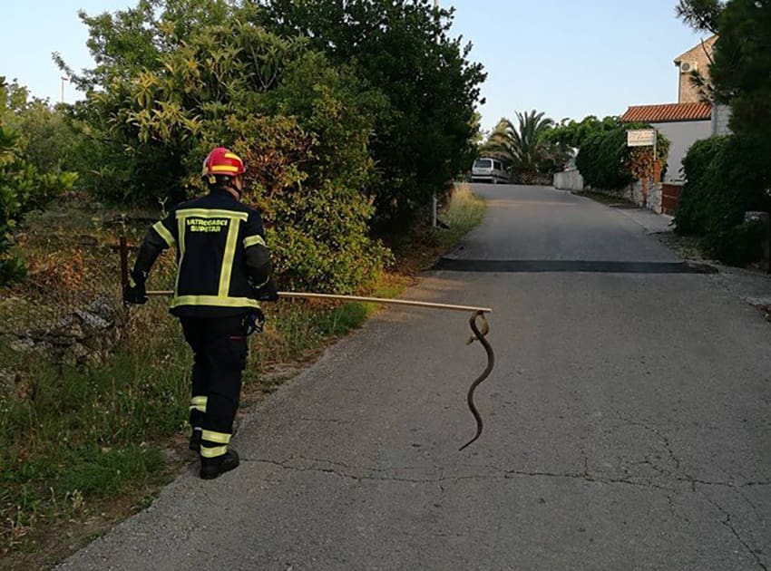 Vatrogasci iz Supetra danas su dobili zanimljiv poziv mještana Splitske o zmiji koja se kreće njihovim ulicama. Po dolasku na intervenciju vidjeli su kako se radi o blavoru, zaštićenoj vrsti guštera.