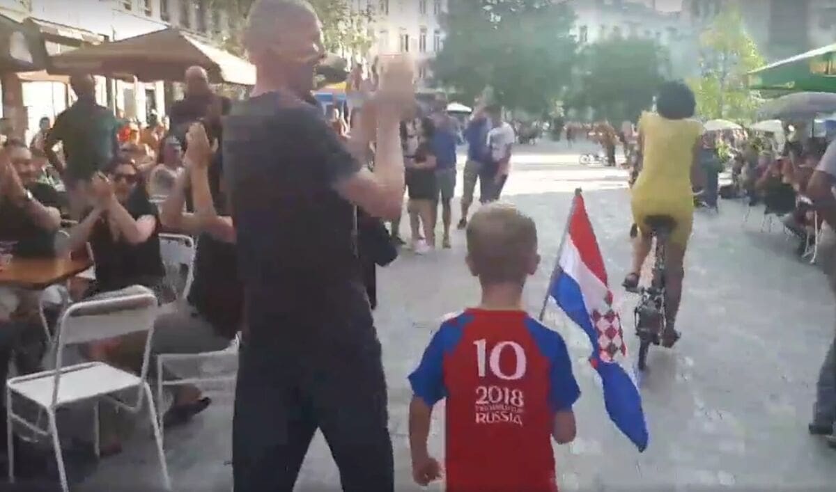 Potpuno nenadano, svi su počeli pljeskati i skandirati malo dječaku koji je prolazi ulicom i držao u ruci hrvatsku zastavu.