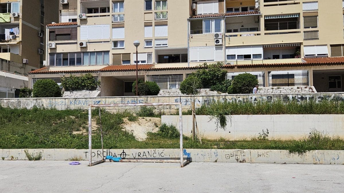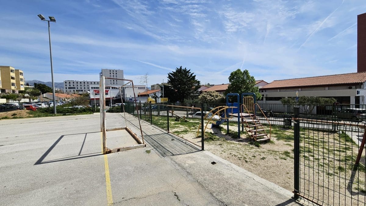 Igralište, kako nam kažu, dijelom pripada Školi za dizajn, grafiku i održivu gradnju i Graditeljsko-geodetsko tehničkoj školi koje je osnovala Splitsko-dalmatinska županija, a dijelom je u privatnom vlasništvu. Vlasnika na čijem se dijelu zemljišta nalazi igralište nećemo imenovati jer djeci zbog igre ne prigovara.