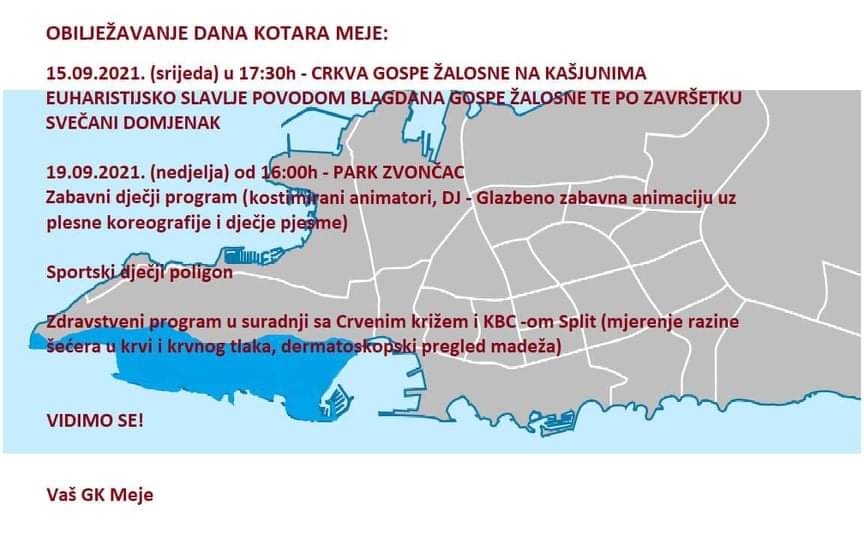 "Za one nešto starije u suradnji s Crvenim križem i KBC-om Split organizirana je kontrola razine krvnog tlaka i šećera u krvi kao i pregled madeža. Sve to, naravno, bit će popraćeno hranom i pićem za posjetitelje", nadodaju iz GK Meje.