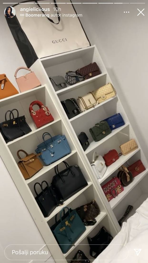 Skupocjene torbice naslagane prema brendu, od kojih se izdvaja birkinica od barem 50.000 kuna, tako izgleda ormar sinjske manekenke Anđele Šimac (24).
