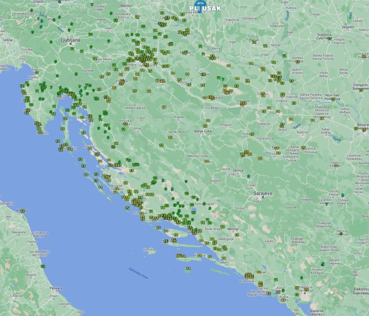 Nakon duže pauze, ciklona će nas prijeći tijekom ponedjeljka. Bit će oblačno s kišom, mjestimice i pljuskovima s grmljavinom, a lokalno može biti tuče. Krajem dana moguć je snijeg u najvišim planinama Dalmacije, no onda se očekuje prestanak oborina i početak smirivanja vremena. Ujutro će puhati jako jugo i oštro, mogući su olujni udari. Vjetar će potom preko lebića okretati na tramontanu koja će na moru imati jake do vrlo jake udare. Ujutro i danju toplo, osjetno će osvježiti u večernjim satima. Ovisno o lokaciji, past će od 10 do 100 litara kiše po kvadratnom metru.