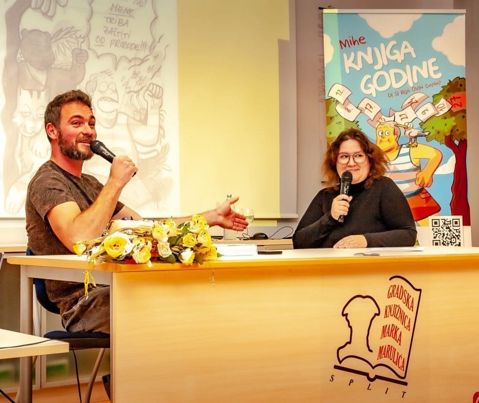 “Osim što radim dnevne karikature, također imam i mjesečne karikature. Svaki mjesec se obilježava nešto posebno. Poput mjeseca zobene kaše, maslinovog ulja i slično, također u knjizi su ilustracije iz mog kalendara koji je već prije ugledao svjetlo dana”, kazala nam je simpatična Mihe koja se splitskoj publici predstavila u Gradskoj knjižnici Marka Marulića.
