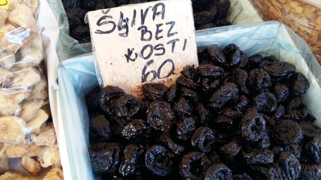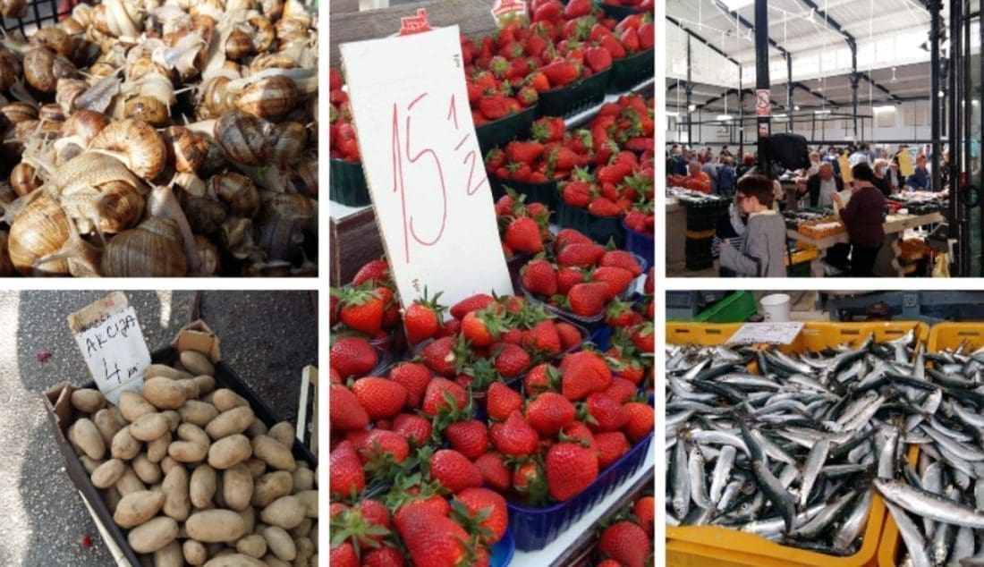 Jagode neretvanske su 30 kuna, vrgoračke 40. Osim uobičajene ponude prodaju se rogači po 20 kuna, spuži 25. A ima i fažoleti iz Maroka po 40 kuna, lipo posloženi ko sardine, a ne naši balkanski. Ne znaš je li fažolet ili bogomoljka.